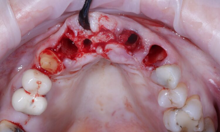 This was pertinent in this particular case, where the surgical sites required grafting to minimise the hard and soft tissue changes that would take place post-surgery, maximising stability and aesthetics.