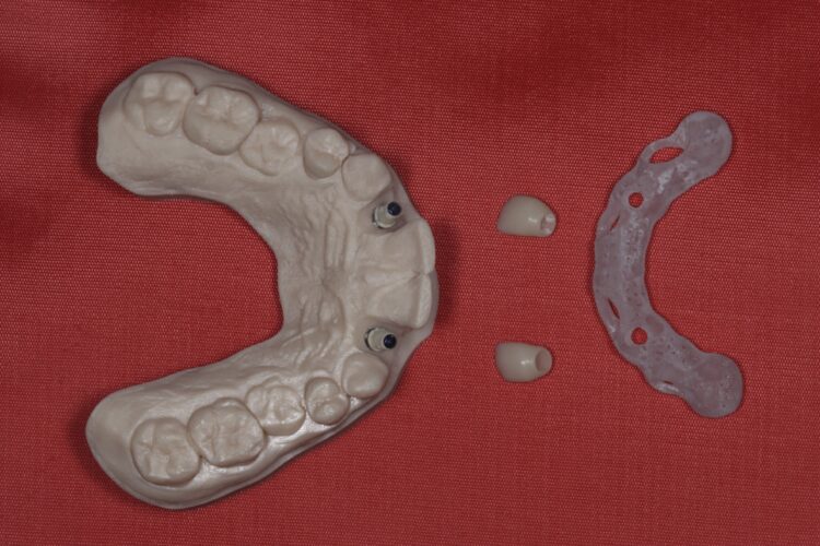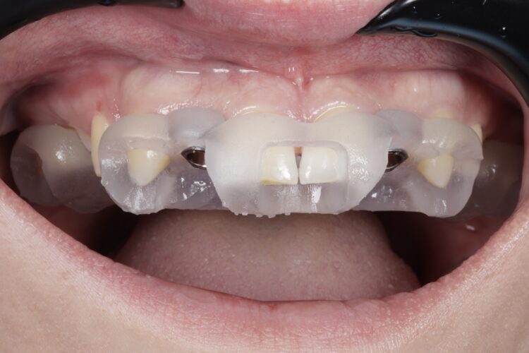 On the day of surgery, a split-thickness envelope flap was raised. Two CONELOG® Progressive-Line implants were placed through the surgical guide in the pre-determined lateral incisor positions. Soft tissue augmentation was performed simultaneously with the implant placement, and the site was sutured and closed without tension. The implants were immediately loaded using provisional crowns that were pre-fabricated in the lab.